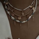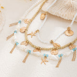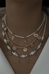 Stay stylish with this trendy holiday inspired conch and starfish necklace! This pretty piece features oceanic elements. Let this stunning pretty piece bring a fresh and sweet look to your wardrobe!