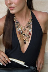 Stay stylish with this vintage layered geometric necklace! This beautiful necklace is made of sparkling zircon stones. Will bring a fresh and sweet look to your wardrobe!