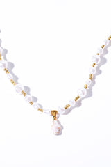 Stay stylish with this pearl necklace! This beautiful necklace is made of sparkling pearls. This stunningly beautiful necklace will bring a fresh and sweet look to your wardrobe!