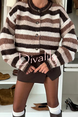 Chilly days fashion knit striped button up long sleeve relaxed cardigan