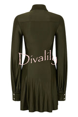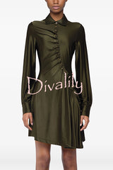 Marvis button-embellished long sleeve asymmetrical drape shirt midi dress