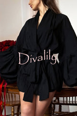 Solid color loose long-sleeved tie-front top and elastic waist casual shorts set