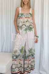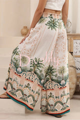 Unique printed casual elastic waist pockets loose wide-leg pants