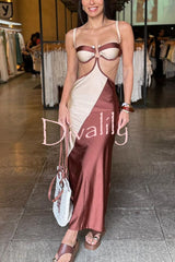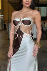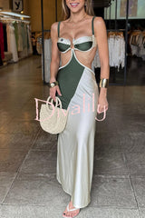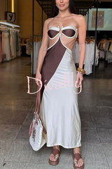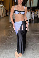 Colorblock u-hardware detail straps elastic bikini and cover-up maxi dress three-piece set