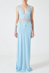 - This floor-length lace gown combines structure and flow, offering a modern interpretation of evening wear. Sheer lace details add depth and dimension to the corset, contrasting sharply with the clean lines and flowing skirt for an effortlessly elegant look. Made from premium washed cupro, the fabric boasts excellent drape, contributing to a relaxed and comfortable feel to the overall design.Our distinctive clothing will add instant style to your wardrobe.