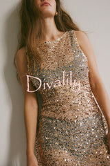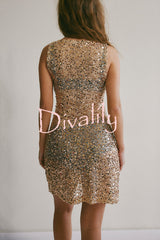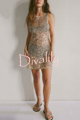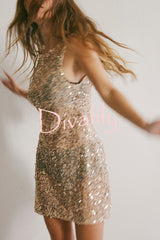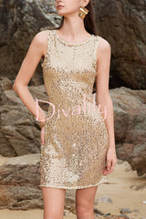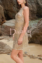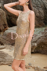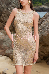 Fashionable sequined round neck sleeveless holiday cover-up mini dress