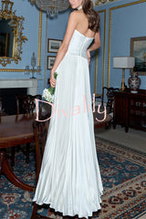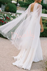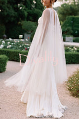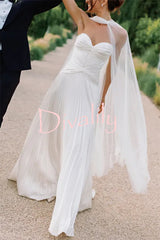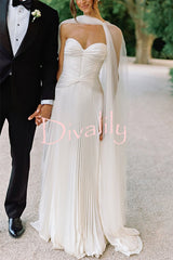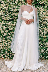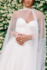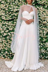 Helen satin pleated tulle shawl cape strapless a-line gown maxi dress