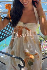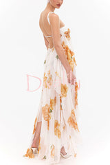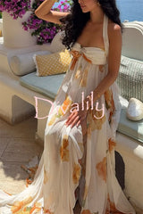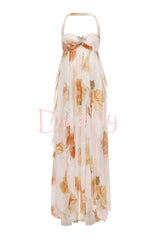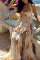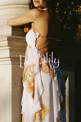Romance and freedom floral print ruffles halter backless slit maxi dress
