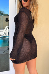 Solid color round neck long-sleeved casual knitted cover-up mini dress