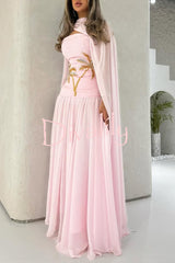 Stylish beaded sleeveless off-shoulder elegant maxi dress with chiffon shawl