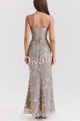 Stylish sleeveless halter-neck slim-fit backless tie-up elegant maxi dress