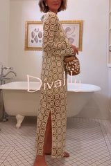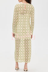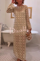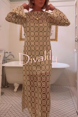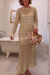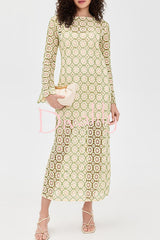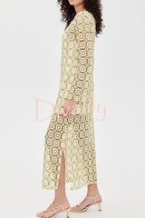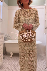 Summer fashion floral crochet cutout fabric long sleeve slit vacation midi dress