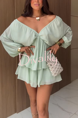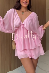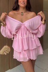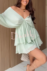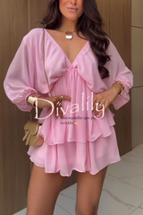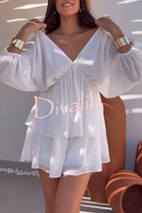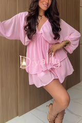 Verne chiffon batwing sleeve elastic high waist layered hem loose mini dress