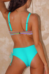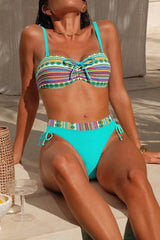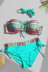 Unique printed tie-waist high-waisted two-piece stretch bikini swimsuit