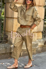 Classic charm mid-rise pocketed loose cropped pants