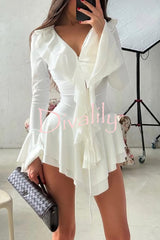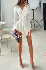 Fashion v-neck long-sleeved ruffled slim-fit rompers