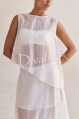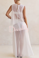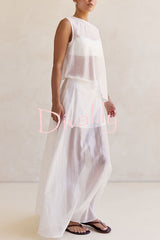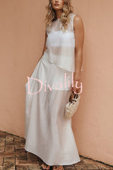 Lena semi-sheer irregular hem top and high rise side zipper a-line maxi skirt set