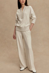 Meet the autumn ribbed zipper neck sweatshirt and elastic waist pocketed loose pants set