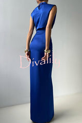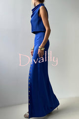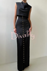 Solid color casual sleeveless crop top and elegant button-down maxi skirt set