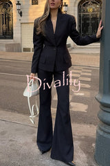 Solid color long-sleeved single-button blazer and pocket casual flared pants set