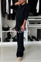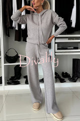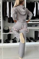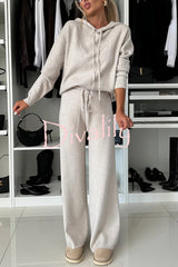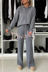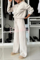 Solid color loose hooded tie sweatshirt and elastic waist casual straight pants set