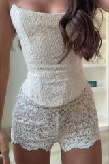 Sprinkle of romance floral lace off the shoulder corset tank and mid rise stretch shorts set
