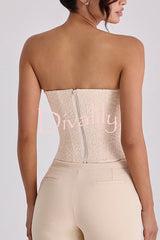 - This corset features delicate lace overlay, a fitted waist, a pointed collar, and a back zipper closure. The matching shorts have a cute, short design with a V-shaped waistband for a slimming effect. The garment offers excellent elasticity for comfortable wear, and a side zipper further enhances ease of dressing.Our distinctive clothing will add instant style to your wardrobe.