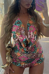 Stylish sequined shell-embellished top and casual slim-fit shorts set