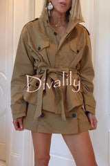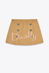 Chic comfort mid rise elastic waist contrast buttons pocket mini skort