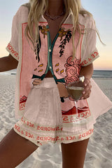 Tarot print loose button elastic waist shorts set
