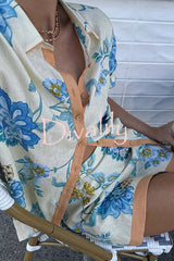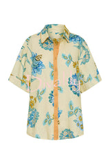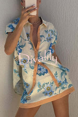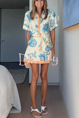 Giselle linen blend floral print short sleeve shirt and zipper mini skirt set