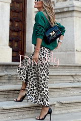 Wild and elegant leopard print elastic waist fishtail loose maxi skirt