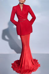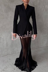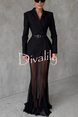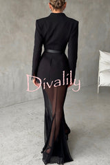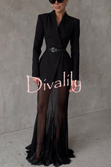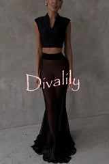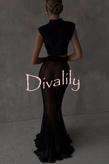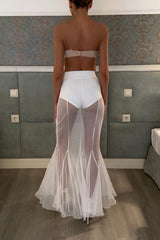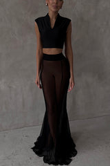 Shes timeless mesh high rise elastic waist fishtail maxi skirt