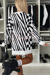 - This geometric print sweater is the perfect choice for those who like to express their unique style! The sweater has irregular wear and subtle holes on the collar, sleeves and lower half, giving it an intriguing, slightly rebellious character. This sweater has a unique, slightly retro look that's perfect for current trends.Our distinctive clothing will add instant style to your wardrobe.