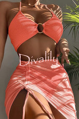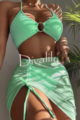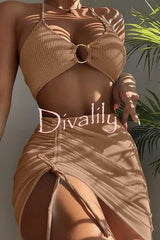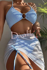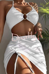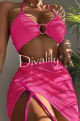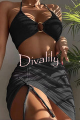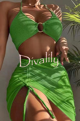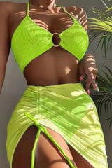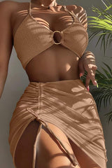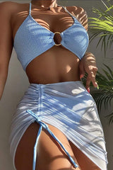 Commuting style suspender pleated hoop three pieces swimsuit set
