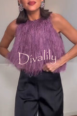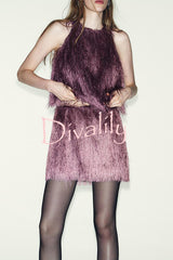 Flowing elegance layered tassels round neck sleeveless a-line tank