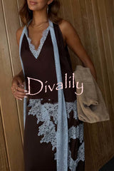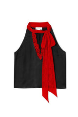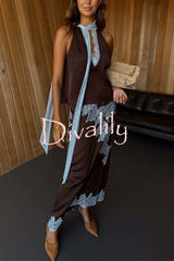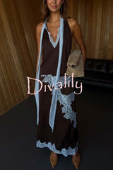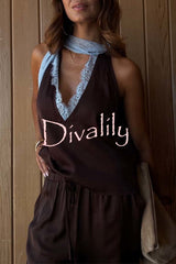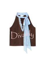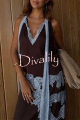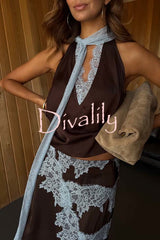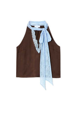 - Designed to be worn both ways, this top elevates any outfit! The tie fastenings in a gorgeous blue lace, that continues into the neckline, beautifully contrasts the deep chocolate brown top making the piece feel super luxe and premium. Pair with the matching skirt of a chic co-ord or tone down with some scallop jeans and a heel.