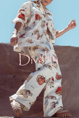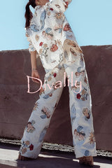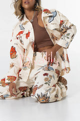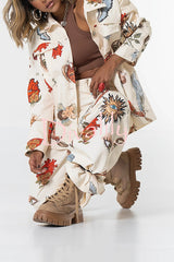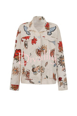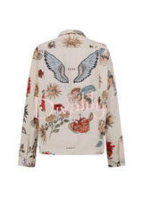 Angel wings denim unique print button up long sleeve pocketed relaxed jacket