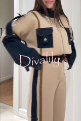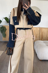 Chill whispers denim patchwork sweatshirt fabric zipper long sleeve pocket loose jacket