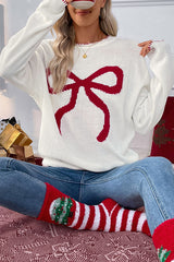 Christmas contrasting color big bow round neck long sleeve loose knitted sweater