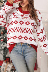 Christmas geometric lamb round neck long sleeve loose knitted sweater