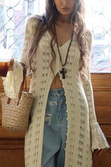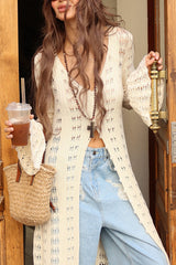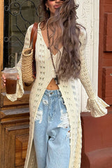 Fashion hollow v-neck long-sleeved casual knitted cardigan