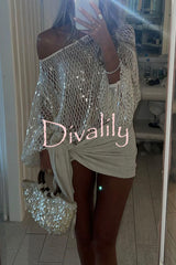 Maja knit sequin hollow out wide neck balloon sleeve loose cover-up top