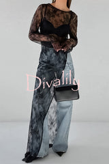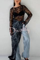 Sexy openwork lace long-sleeved asymmetrical casual top