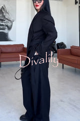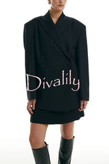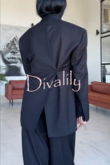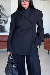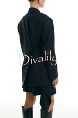 Urban charm shoulder pads asymmetrical back button lapel oversized blazer