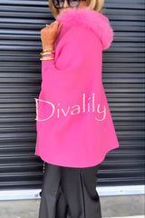 Warm call knit long sleeve zipper plush hooded pocket loose cardigan