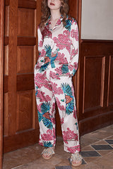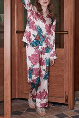 Birds and flowers print home long-sleeved two-piece set