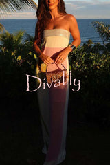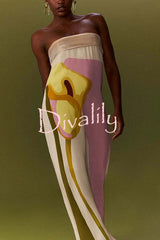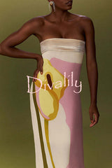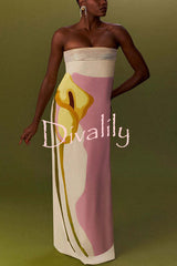 Dalva calla lilies print pleated metallic fabric patchwork bandeau loose maxi dress
