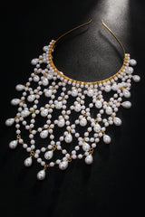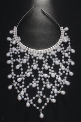 Add a touch of elegance to your special occasion outfit with this stunning mesh pearl headpiece. This headpiece features an exquisite design and is perfect for weddings, competitions or festivals. This headpiece adds a touch of drama to your look and will make you stand out from the crowd.