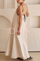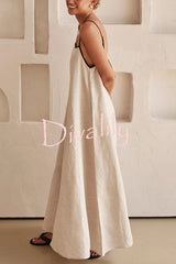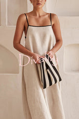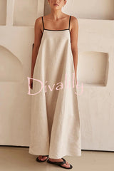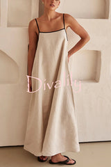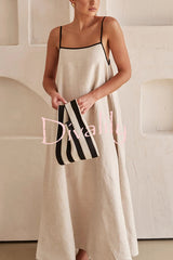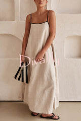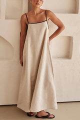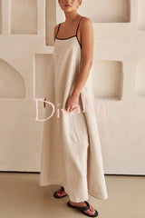 Dasha linen blend square neck pocketed a-line loose maxi dress